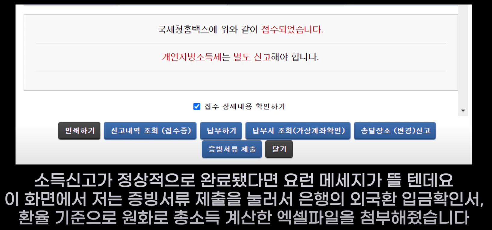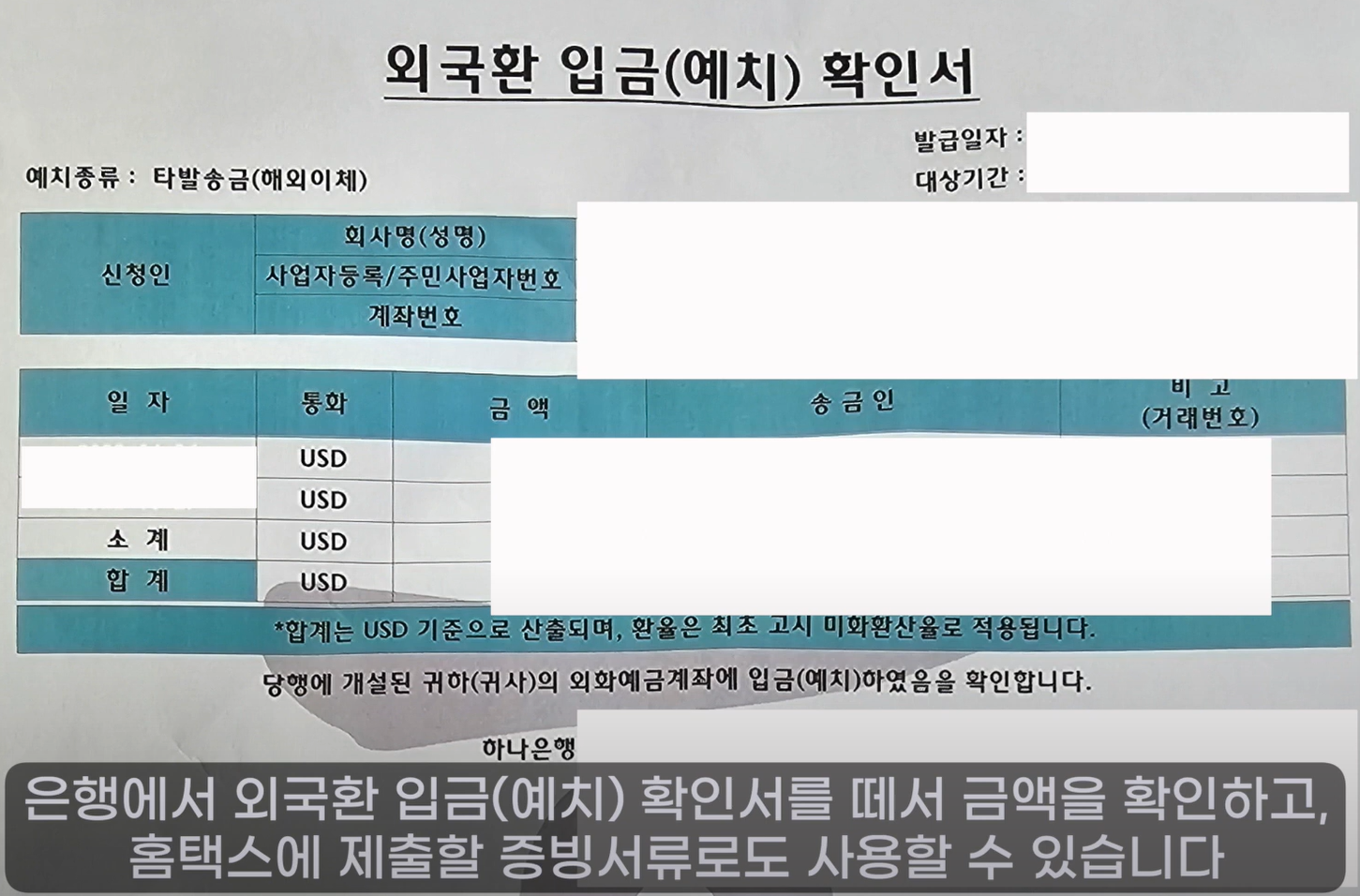 ## 은행 (외국환 입금 확인서) : 홈택스 증빙서류 제출 (총 소득을 원화로 계산)