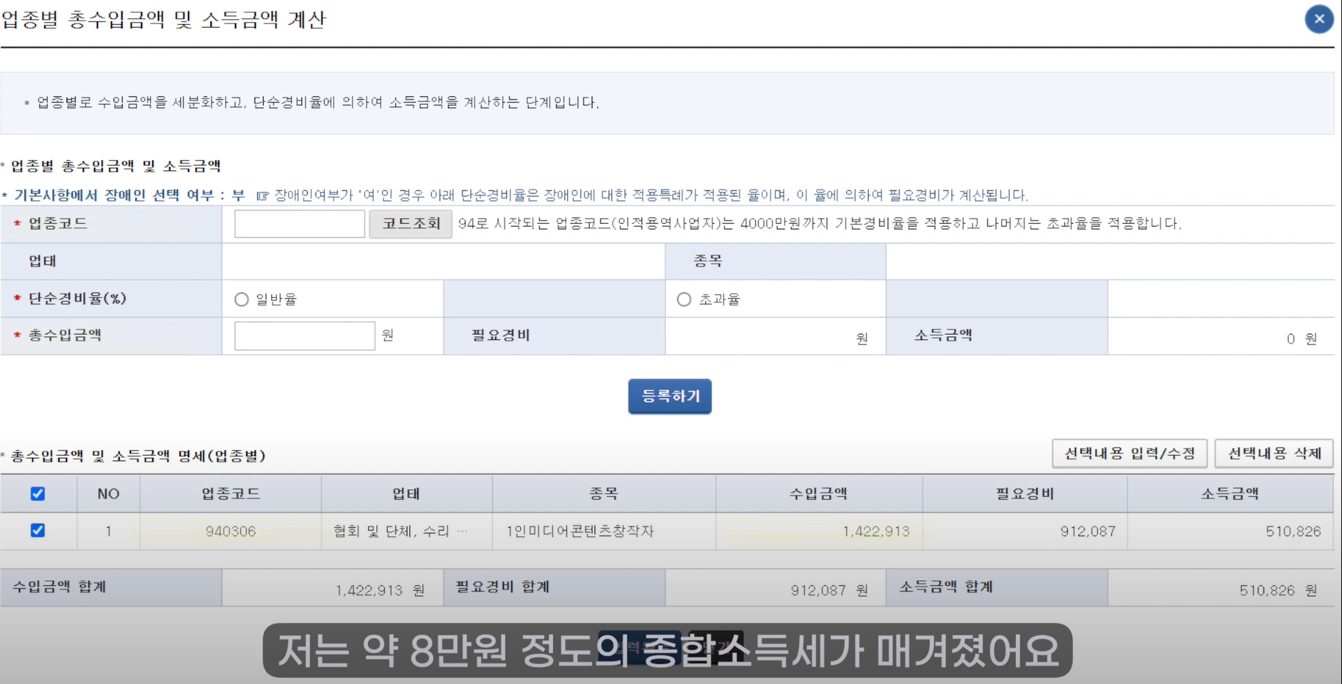 ## 1인 미디어 창작자 업종코드 : 940306
