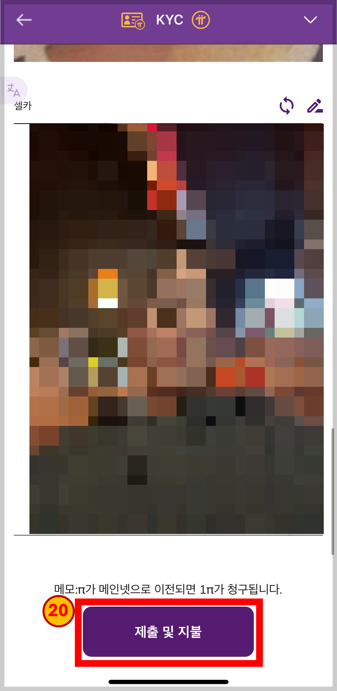 두 번째로 셀카를 찍어 본인임을 증명 함