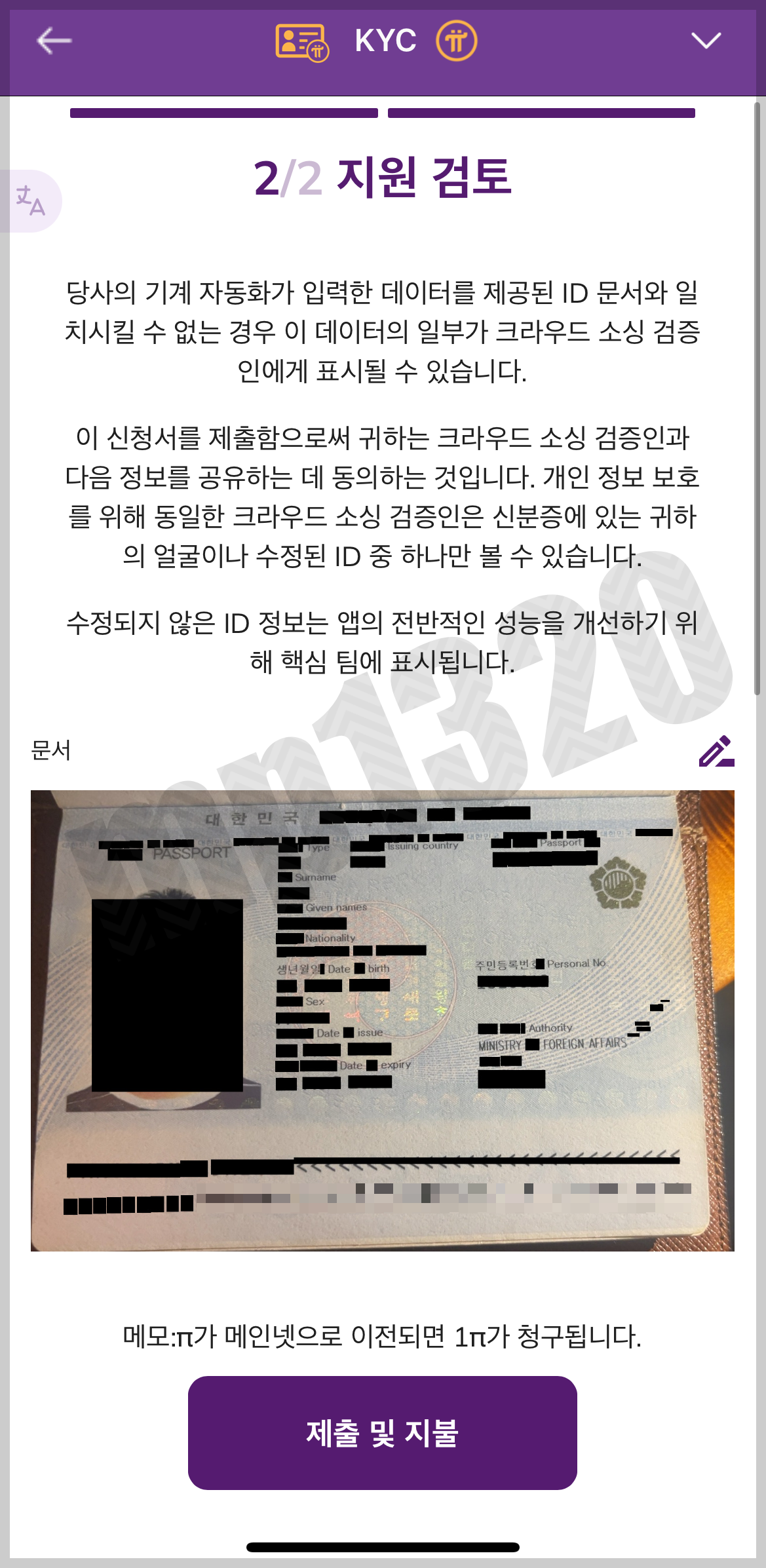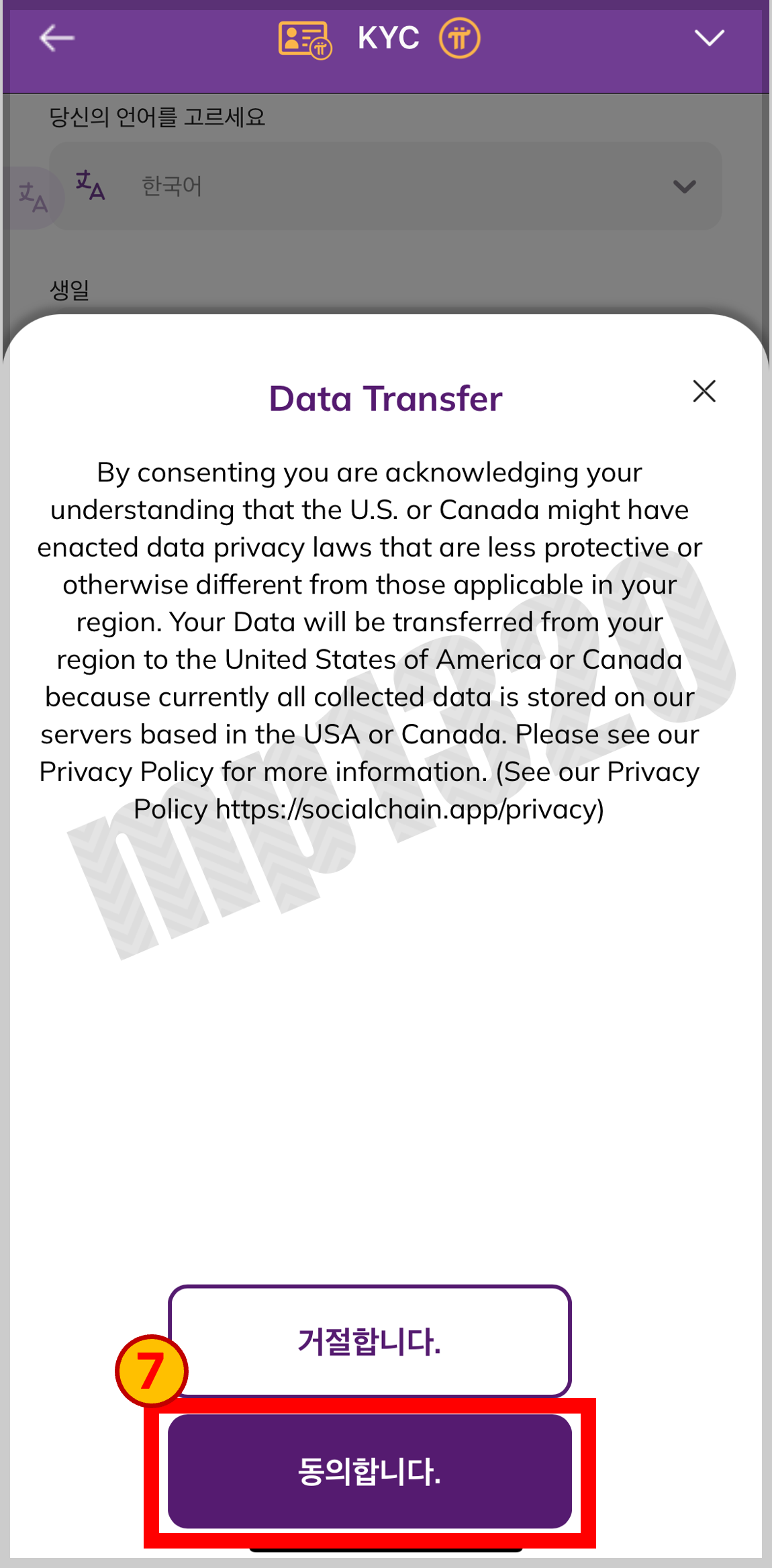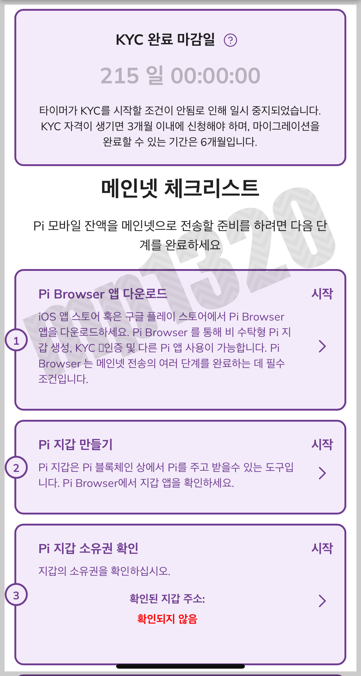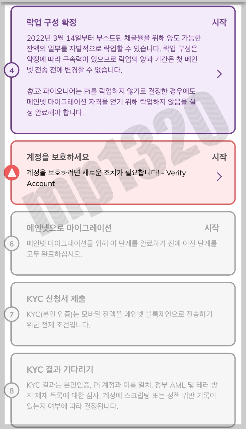 7번 KYC인증은 채굴 한달 뒤에 진행할 수 있음