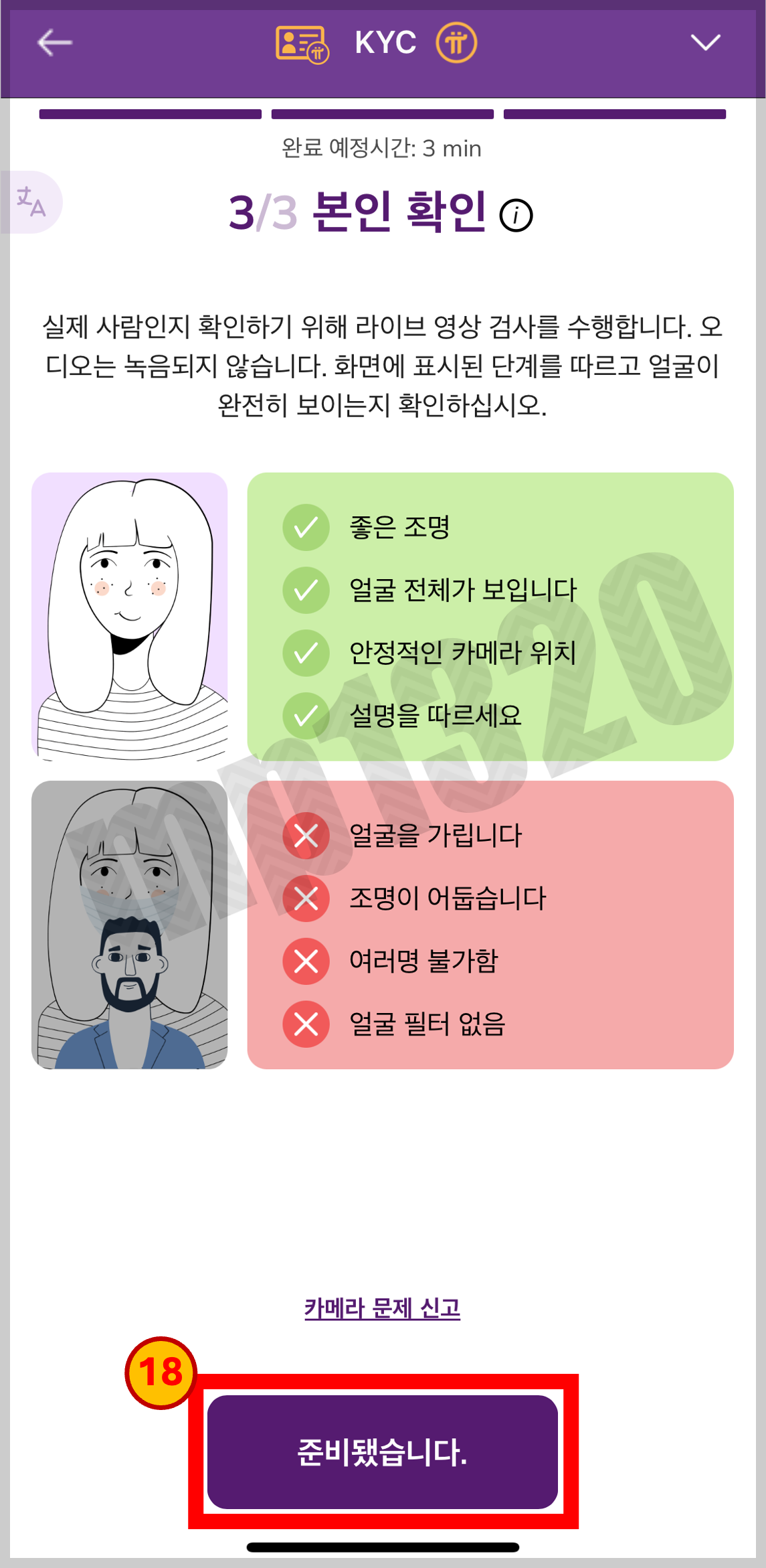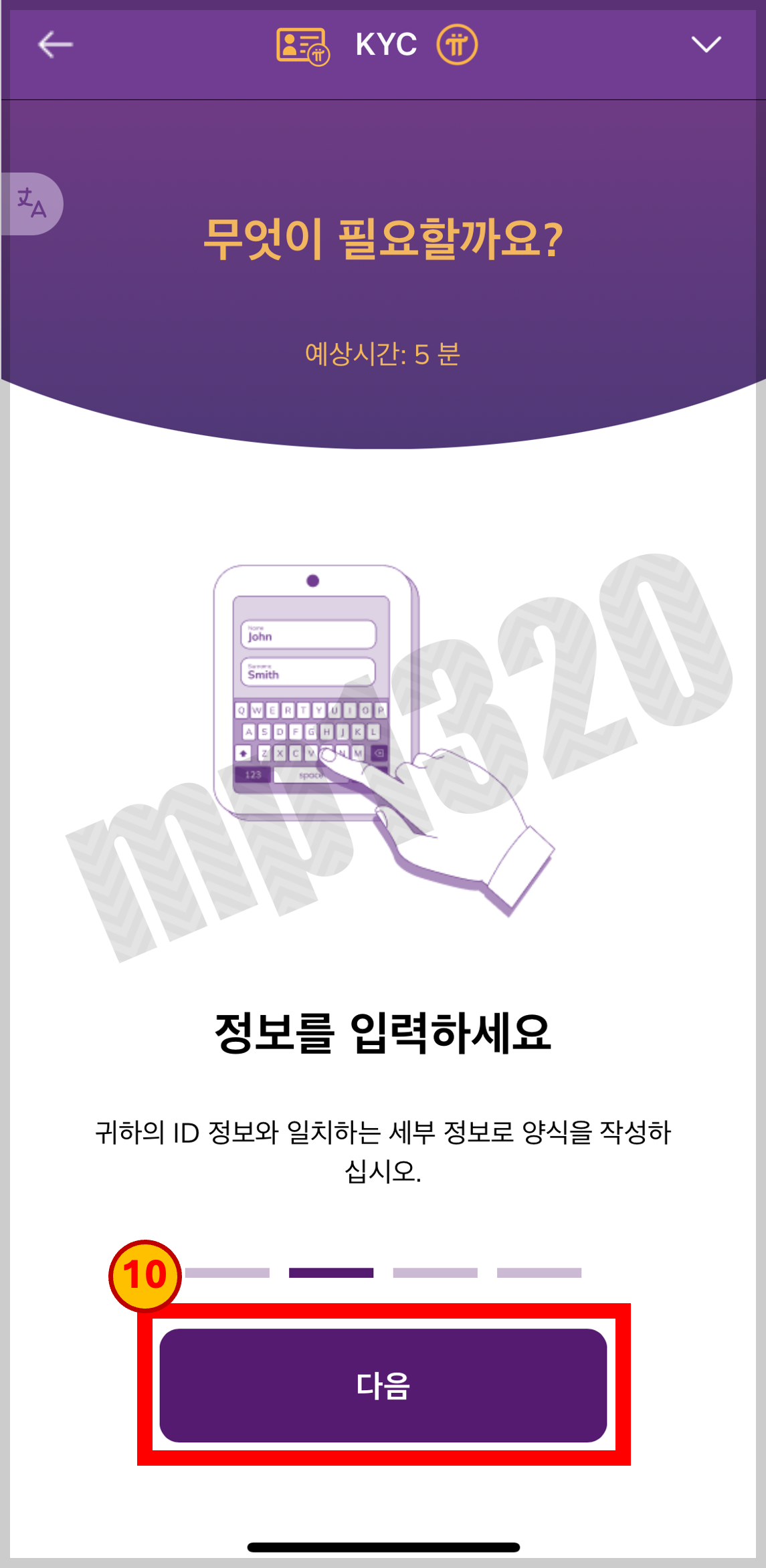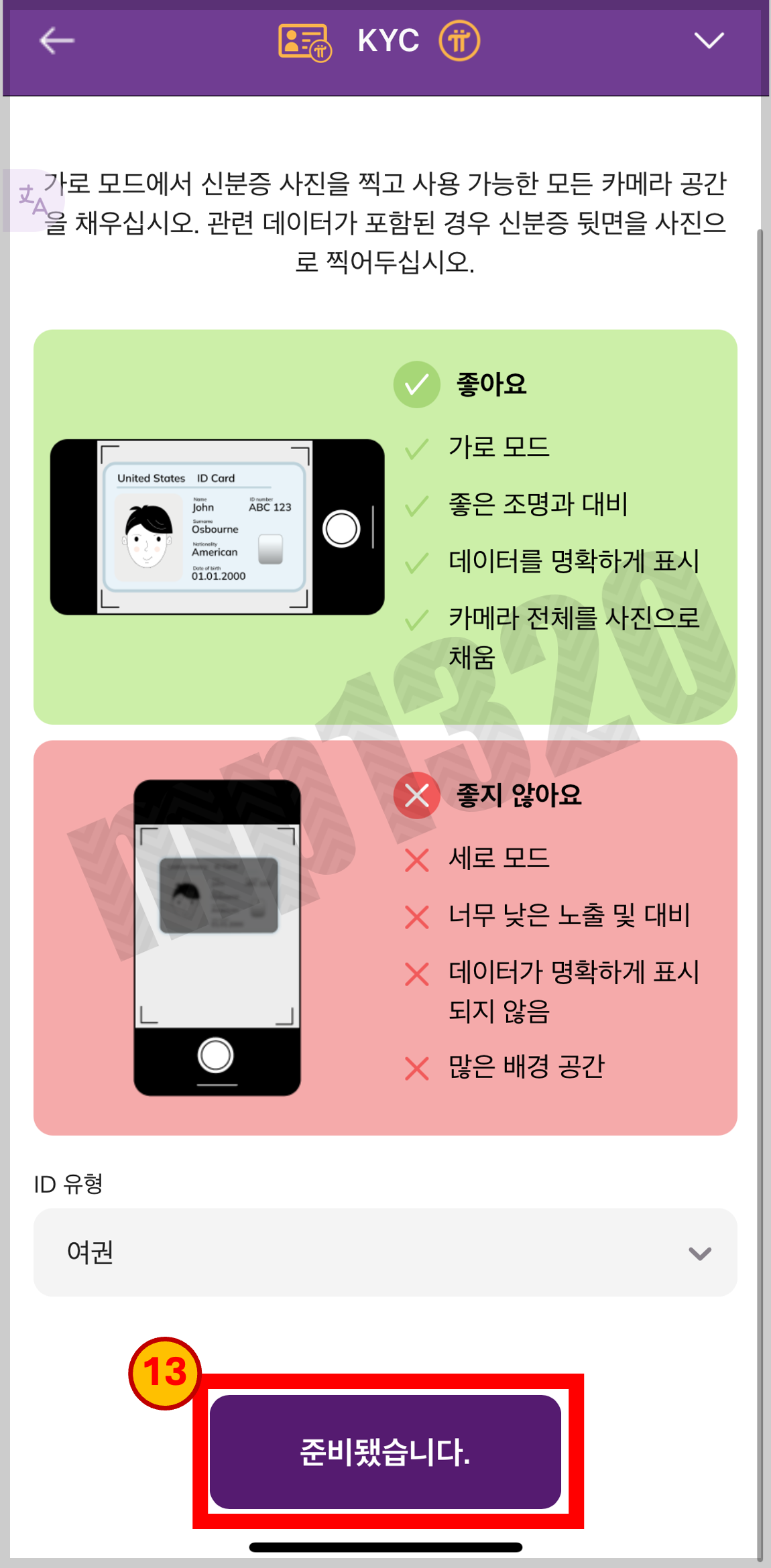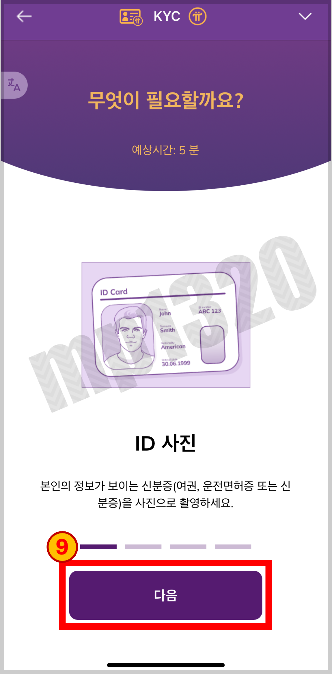 KYC인증을 위해 진행되는 순서를 알려줌