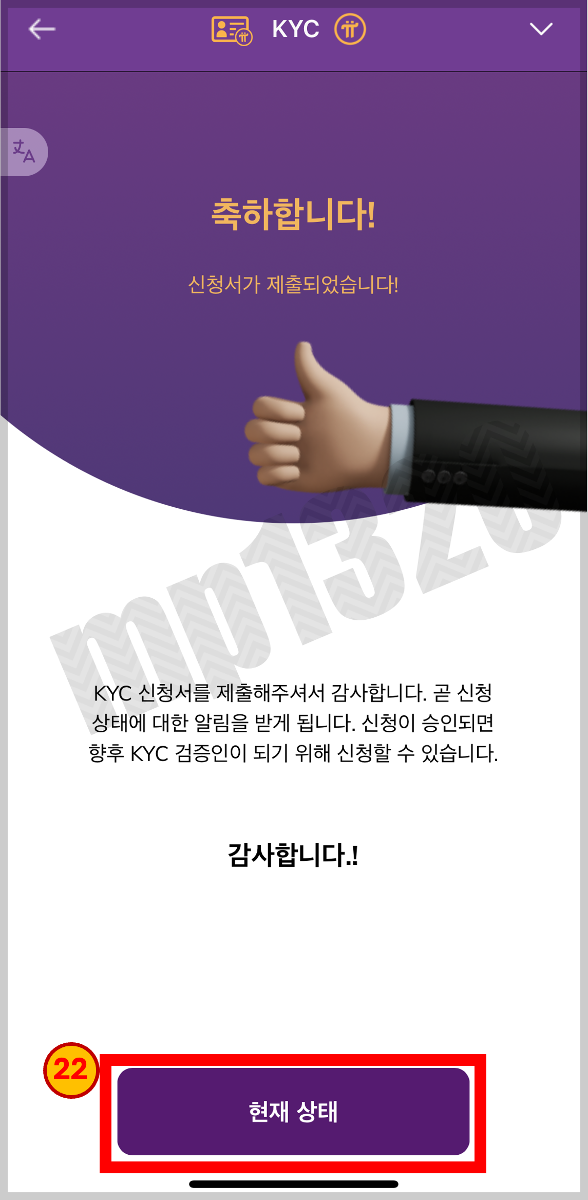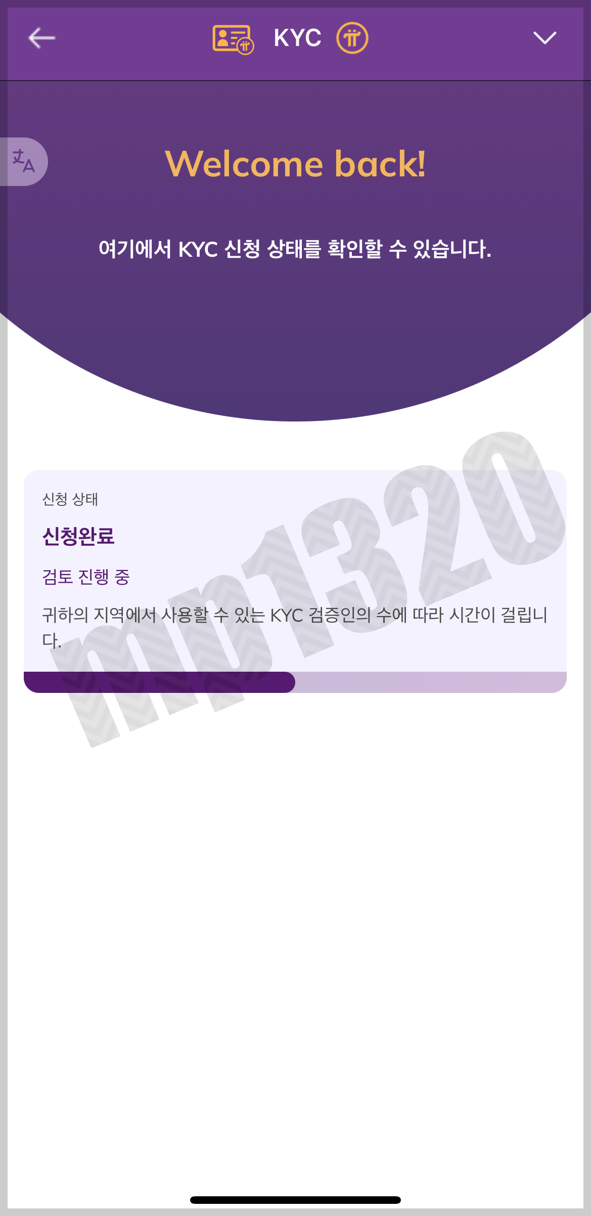가입후 한달정도(약 30회정도) 채굴해야 KYC 신청 자격이 됩니다.