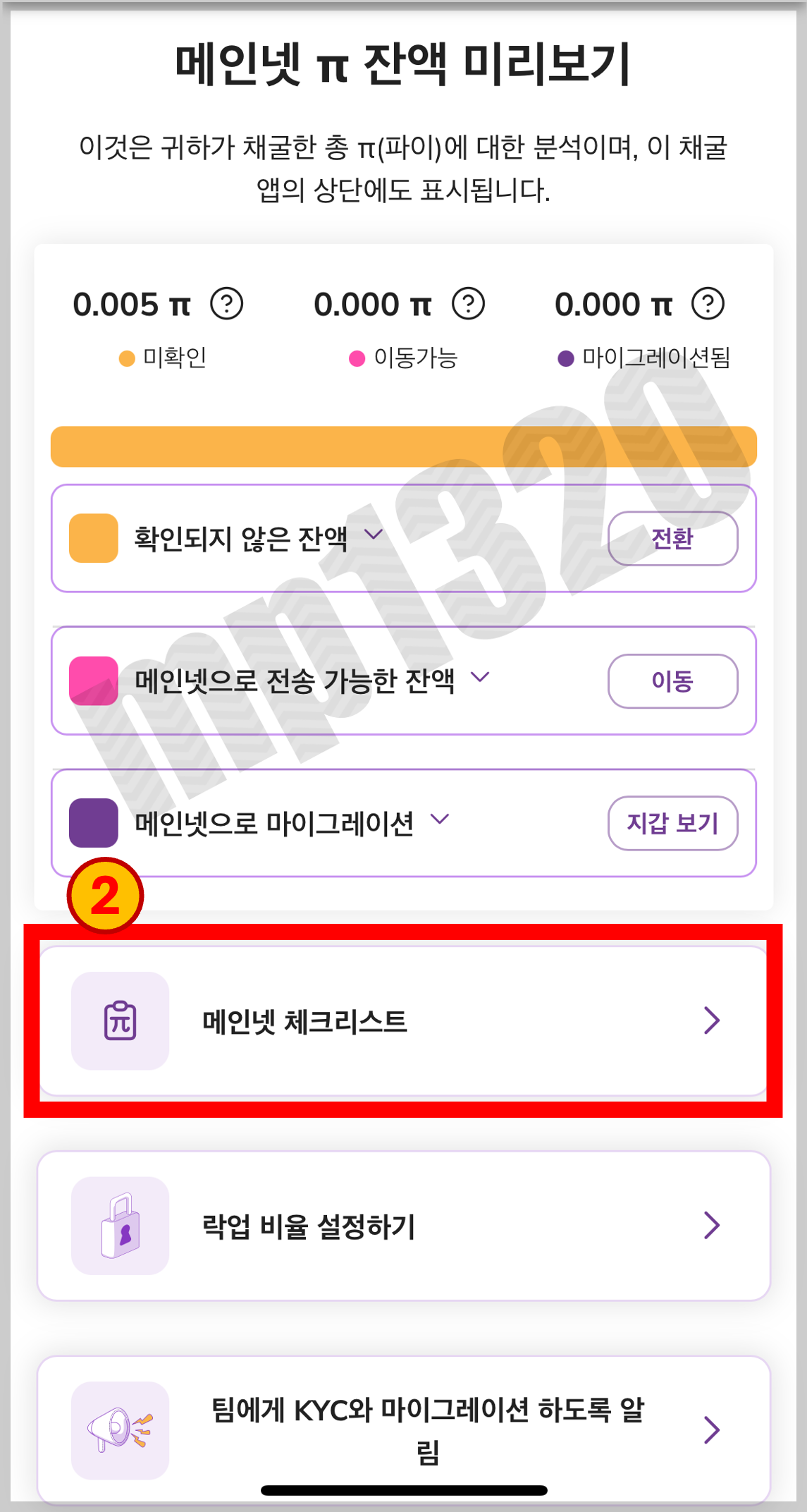 2. 메인넷 체크리스트 누르기