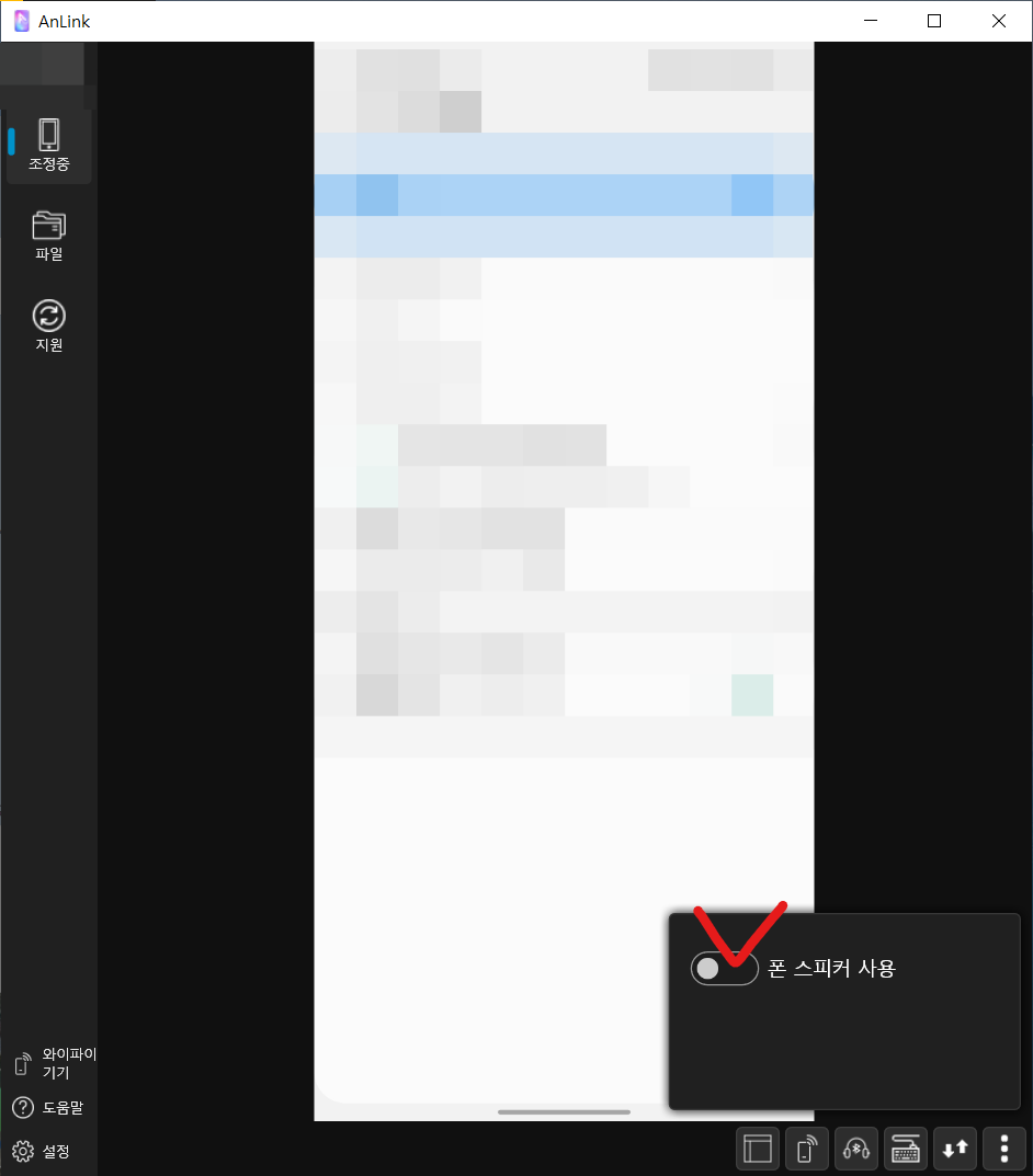 스마트폰과 PC가 연결된 상태(연결 방식 상관 없음)에서 앤링크 프로그램 화면 오른쪽 하단의 헤드셋 버튼을 누르세요.