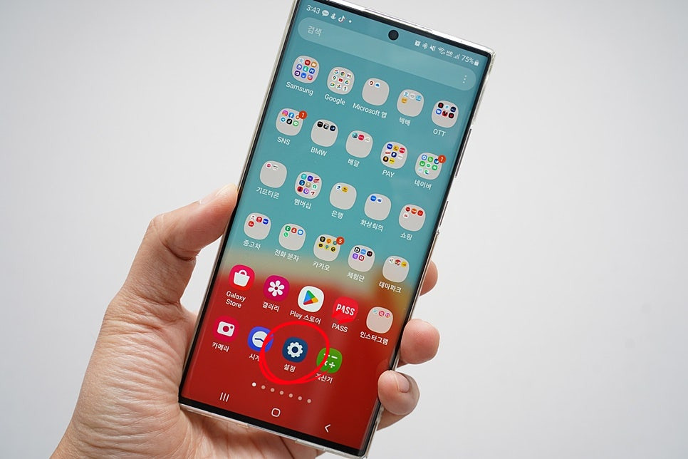 갤럭시 개발자모드 진입을 위해서는 설정으로 진입해 주어야 합니다.