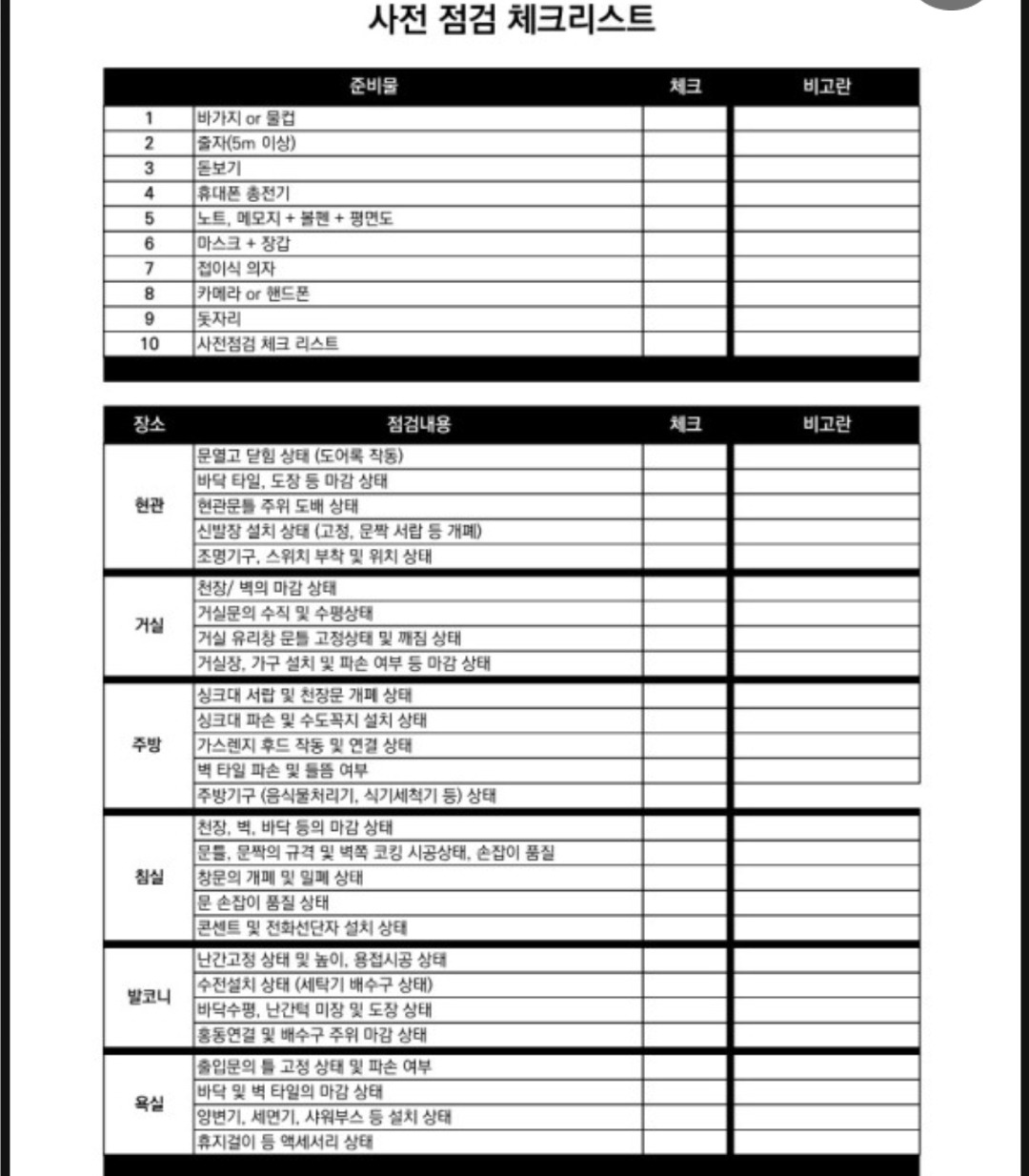 이 리스트는 보통 건설사나 관리사무소에서 제공하며, 중요한 항목들이 빠지지 않도록 돕습니다.