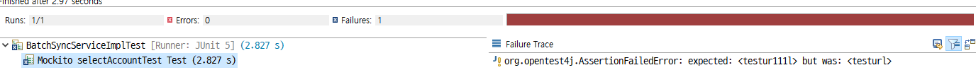 값을 달리하여 테스트하게되면, 결과는 아래와같이 Fail뜨게 된다.