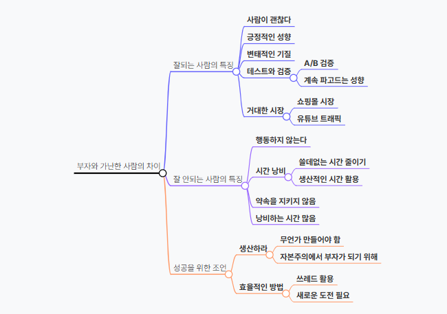 시간 활용법: 성공적인 사람들은 쓸데없는 시간을 줄이고, 생산적인 활동에 집중한다. 예를 들어, 휴대폰을 멀리 두고, PC에 불필요한 앱을 설치하지 않는다.