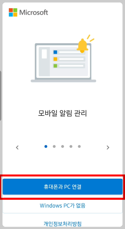 스마트폰 화면에 [휴대폰과 PC 연결] 버튼이 생성되면 터치해 줍니다.