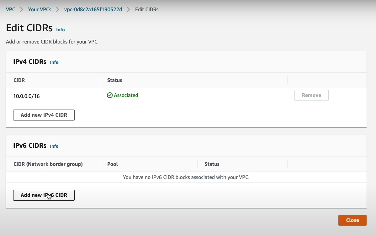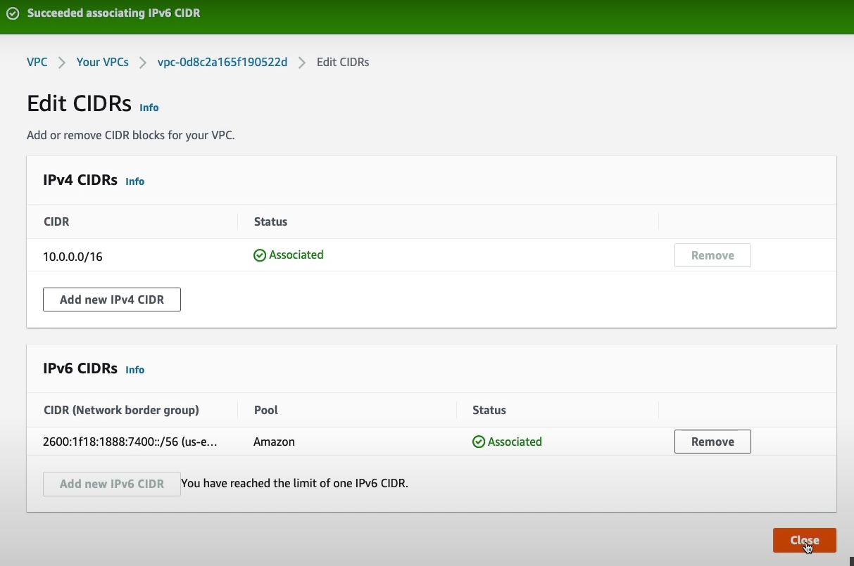 - Public-1a 활성화 : Edit IPv6 CIDRs