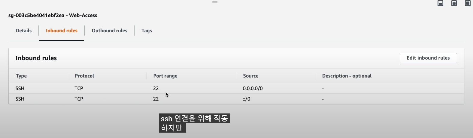 - 인바운드 / 아웃바운드 --> ::/0 확인