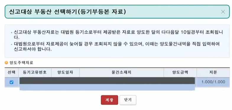 | 조정대상지역 여부 | 홈택스에서 자동 체크 |