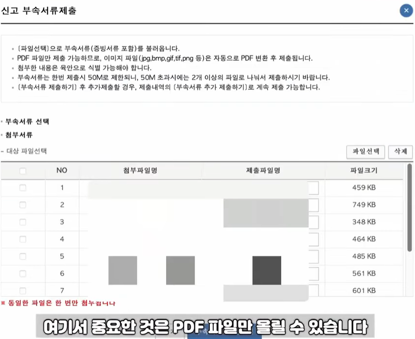 - 세금계산서, 현금영수증, 카드영수증 등 제출 필요