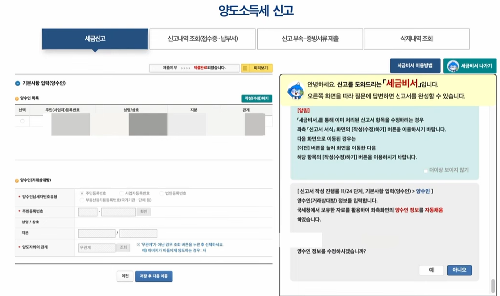 국세청 홈택스의 세금 비서 간편 신고 기능을 활용하면 다주택자도 복잡한 양도소득세를 셀프로 쉽게 신고할 수 있습니다.