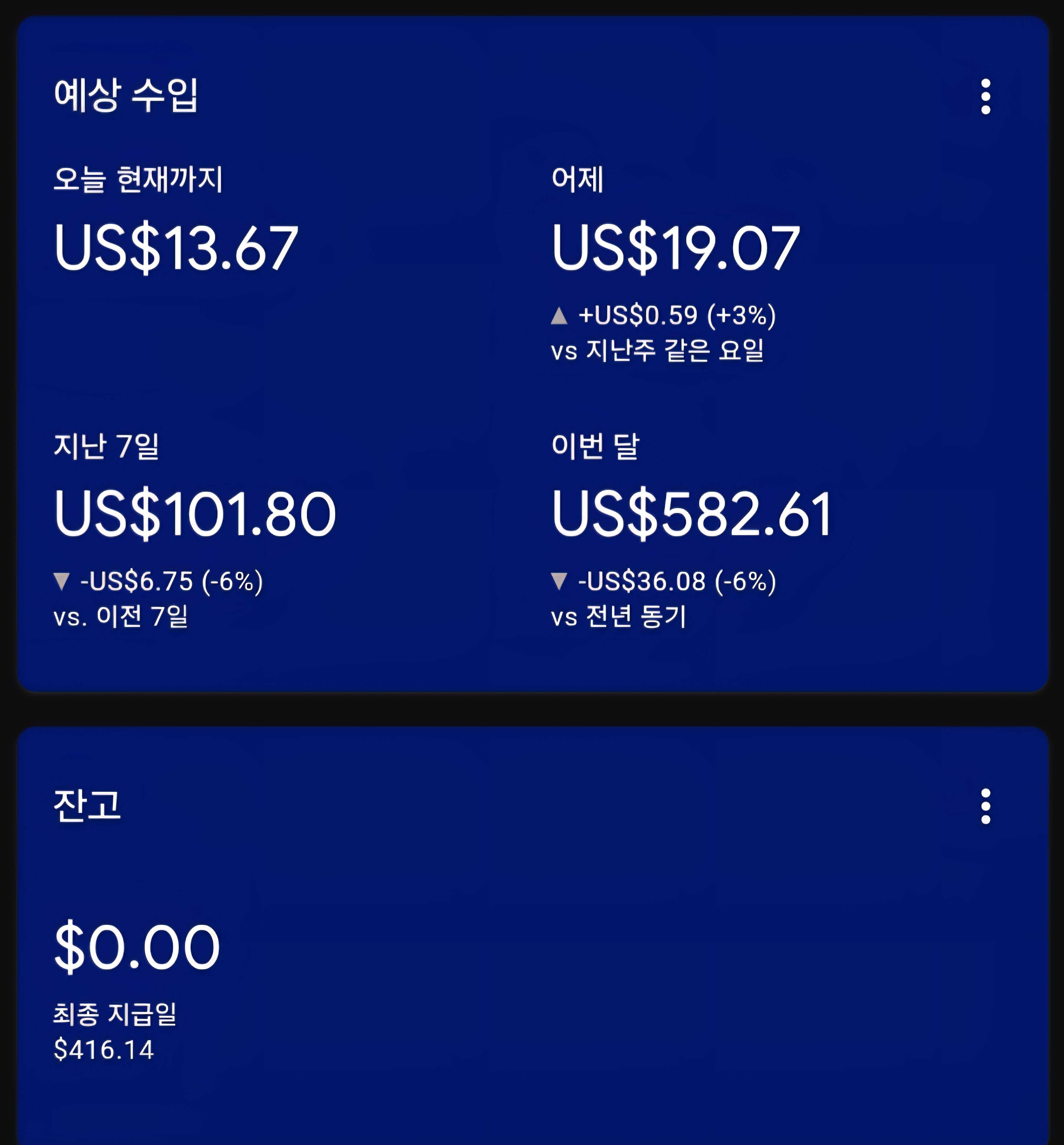 | [인시그니아 반포점 입점 / 애드센스 건물주 - 6월 월세] US $214 돌파 - AdSense 6/10일!! (6) | 2025.06.11 |