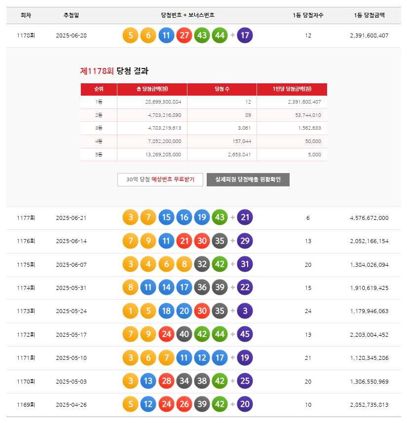 | [6/7] 1175회 로또 당첨번호 추천!! (8) | 2025.06.07 |