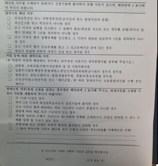 참여하지 못할 경우 불출석 사유 신고서를 제출하면 된다.