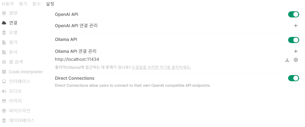 4. Open-WebUI 관리자 패널에서 API 연결 설정하기
