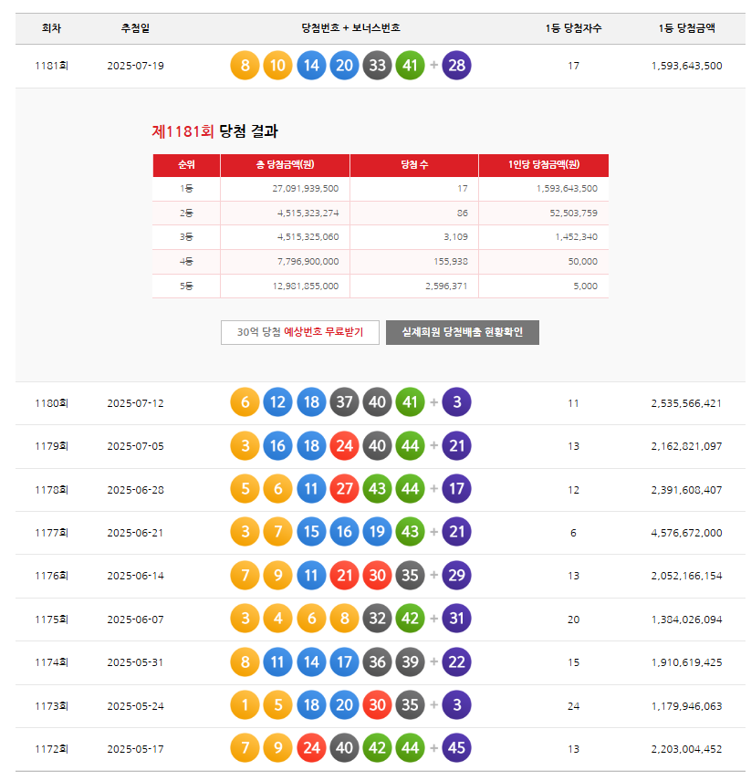 | [7/12] 1180회 로또 당첨번호 추천!! (3) | 2025.07.10 |