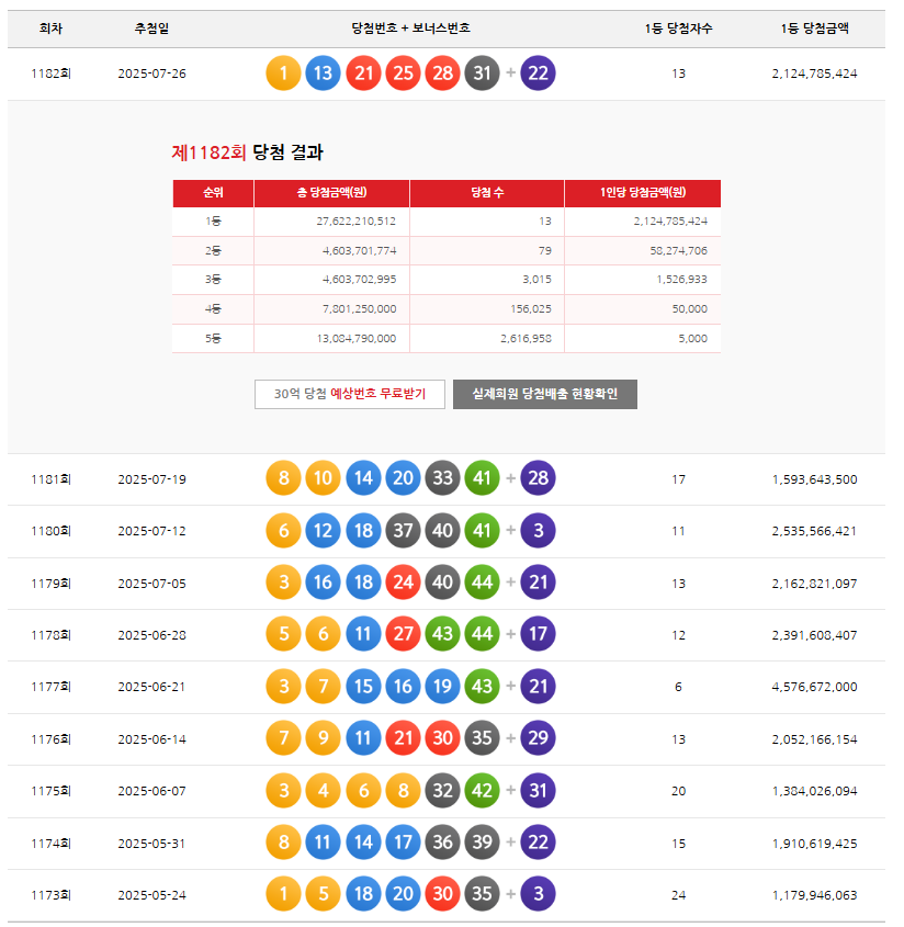| [7/12] 1180회 로또 당첨번호 추천!! (3) | 2025.07.10 |