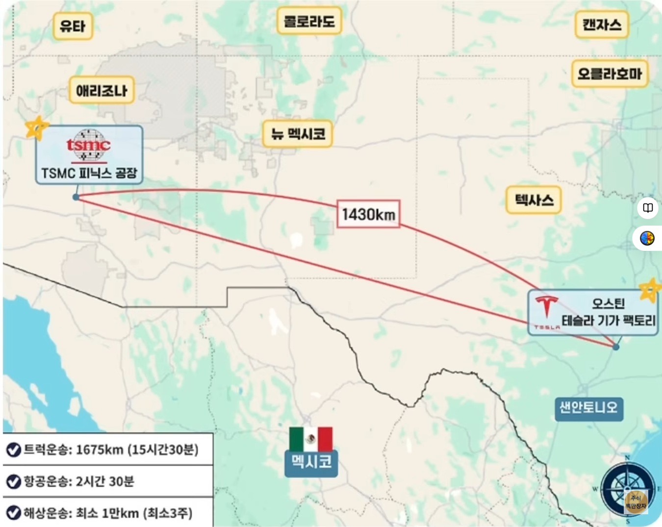 - 이는 TSMC 미국 공장(애리조나 피닉스) 대비 최대 40배 이상의 물류비 절감 효과로 해석할 수 있습니다 reuters.comFinancial Times.