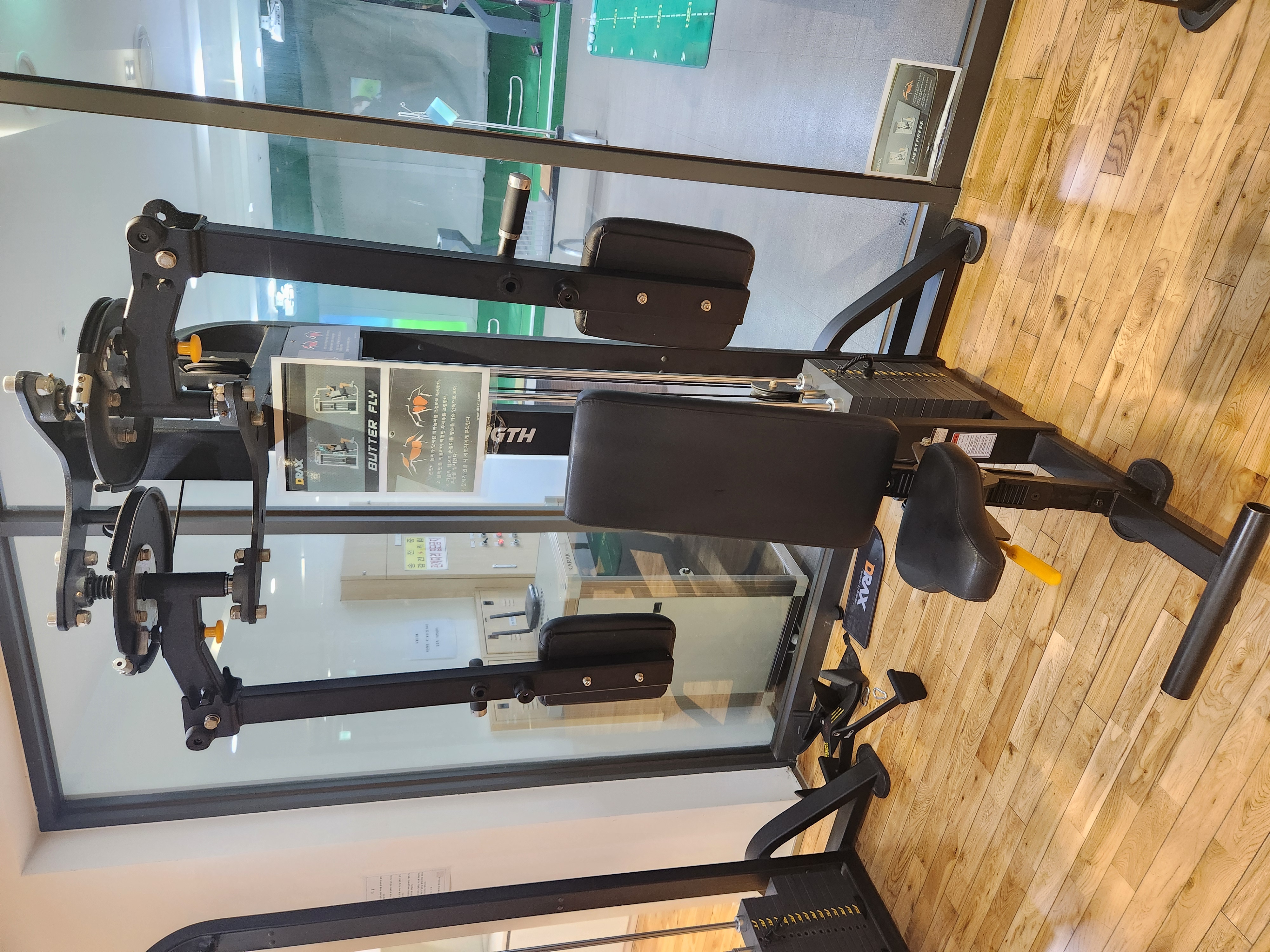 👉 요약: 이 기구는 **가슴 안쪽을 집중적으로 단련하는 버터플라이 머신(펙덱 플라이 머신)**이며,