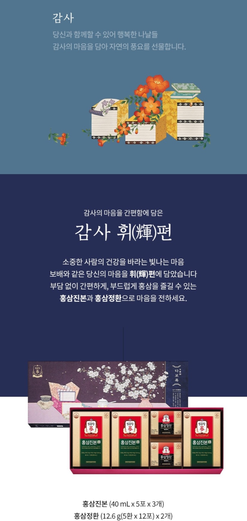 정관장은 6년근 홍삼 등 원료·제조기준을 명확히 하는 브랜드 신뢰도를 바탕으로 다보록 세트를 구성합니다. 즉, ‘브랜드 신뢰 + 다양한 형태(액/환/스틱)’가 결합된 선물형 라인업입니다.