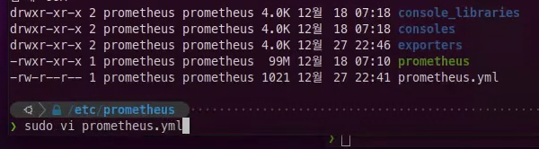 ## sudo vi prometheus.yml 파일 수정