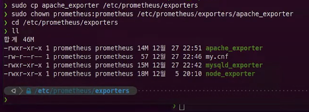## apache_exporter 이동 및 권한 변경