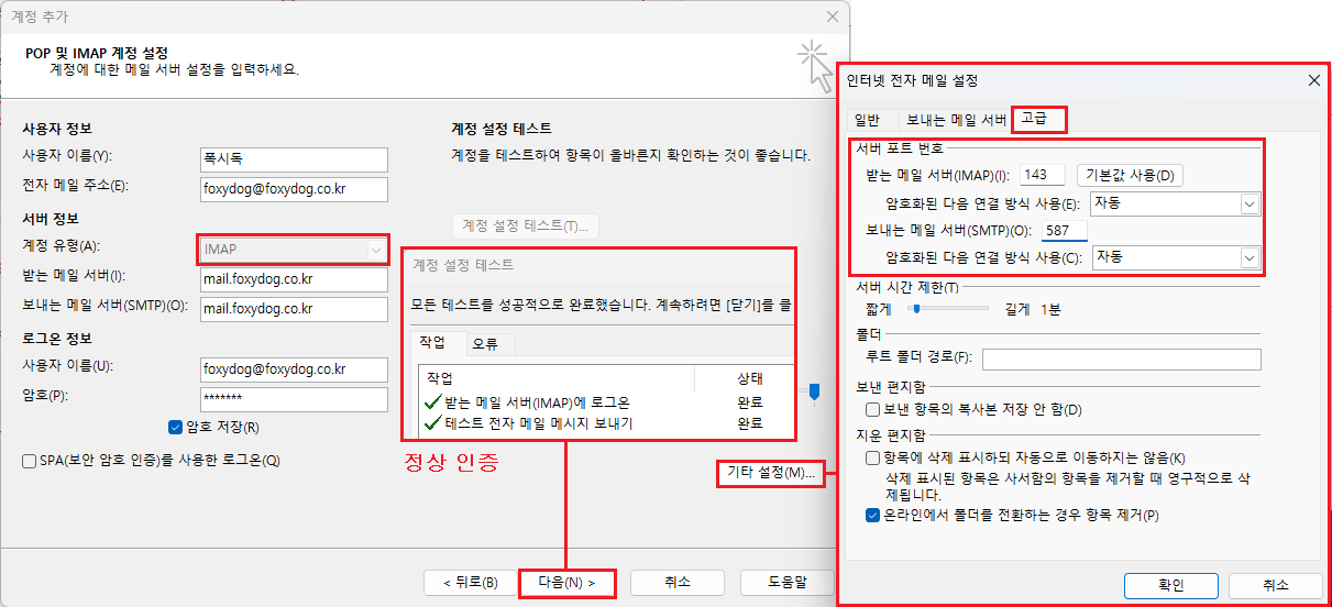 ◇ IMAP[143] / SMTP[587] 연결