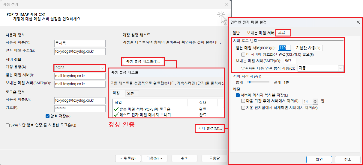 ◇ POP3[110] / SMTP[587] 연결