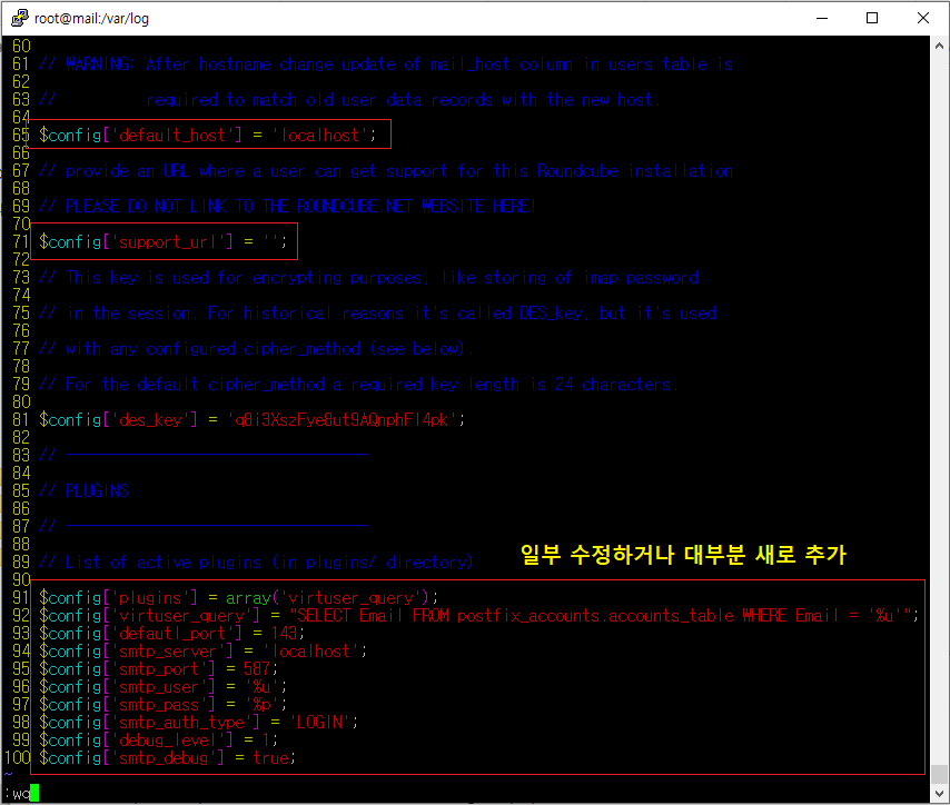 [root@localhost ~]# vim /var/www/html/roundcube/config/config.inc.php