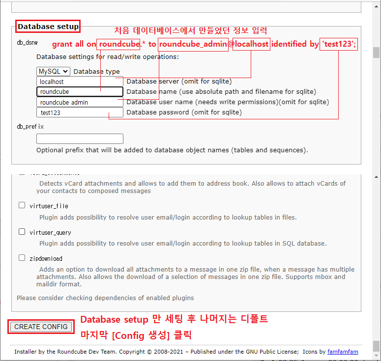 6-4 [CREATE CONFIG] 설정에서 [Database setup] 부분만 세팅 후에 다음 진행