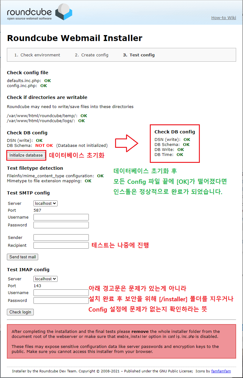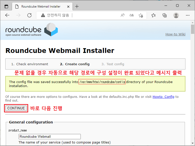 ※ http://서버IP/roundcube/installer/ [접속]