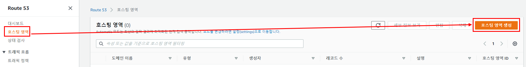 Route53 콘솔 화면에서 다음과 같이 클릭한다.