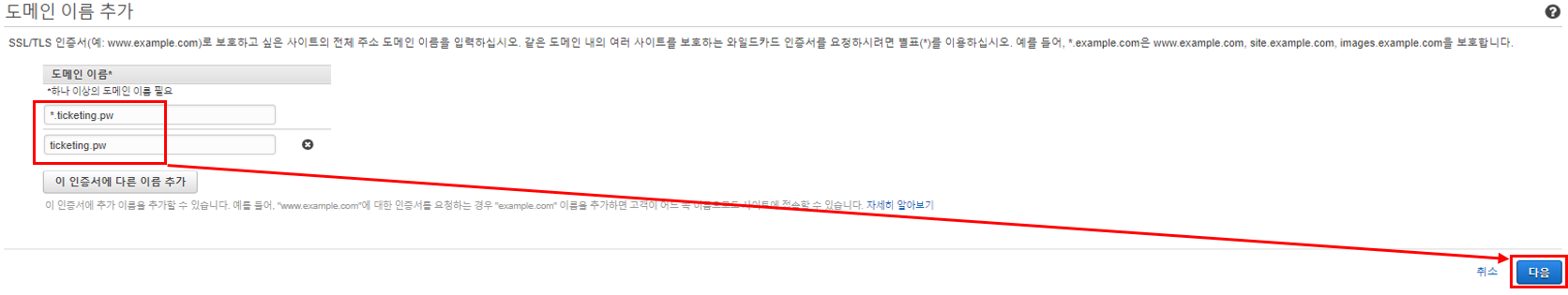 서비스 할 도메인 명을 적는다.