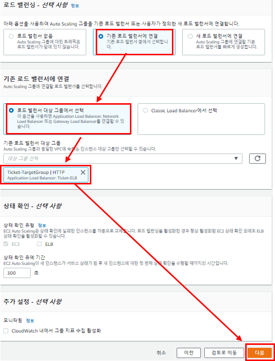 미리 생성했던 Target Group에 생성되는 WEB서버들이 포함되도록 설정한다.