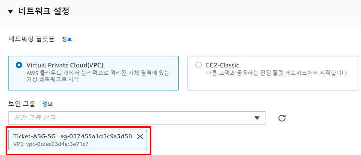 생성한 웹 서버용 보안 그룹을 선택하고 생성을 완료한다.