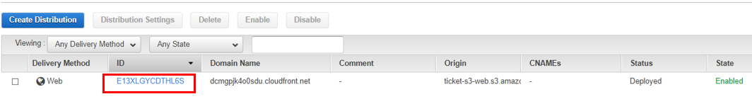 나머지 모든 설정은 기본값으로 두고 Distribution을 생성한다.