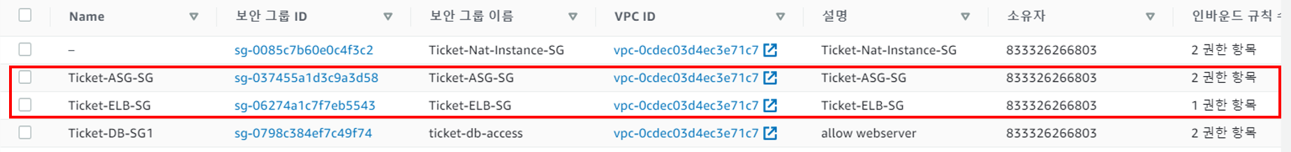 7. 서울 리전 ELB와 WEB 서버에 사용 될 보안 그룹 생성