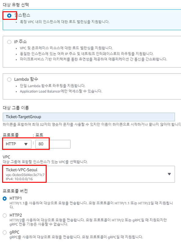 ELB가 트래픽을 보내줄 대상을 지정하기 위한 Target Group을 생성한다.