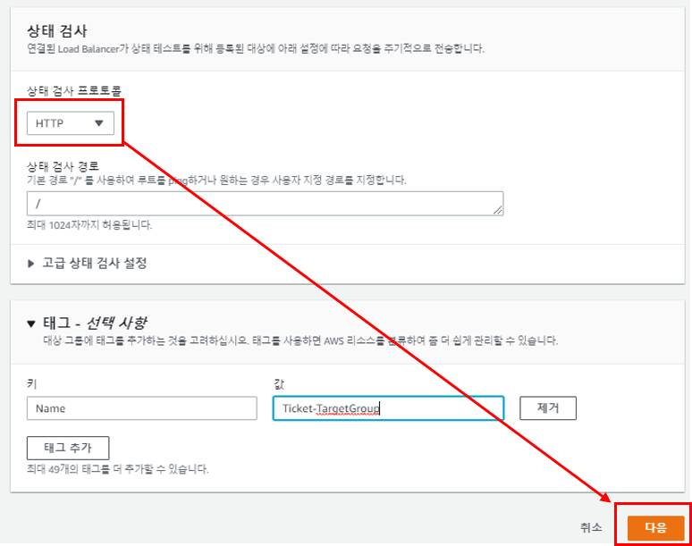 ELB와 WEB은 굳이 HTTPS로 통신할 필요가 없으므로 HTTP로 프로토콜을 설정한다.