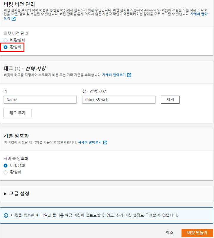 버킷 버전 관리를 활성화해야 이후 버킷 복제 규칙을 생성할 수 있다.