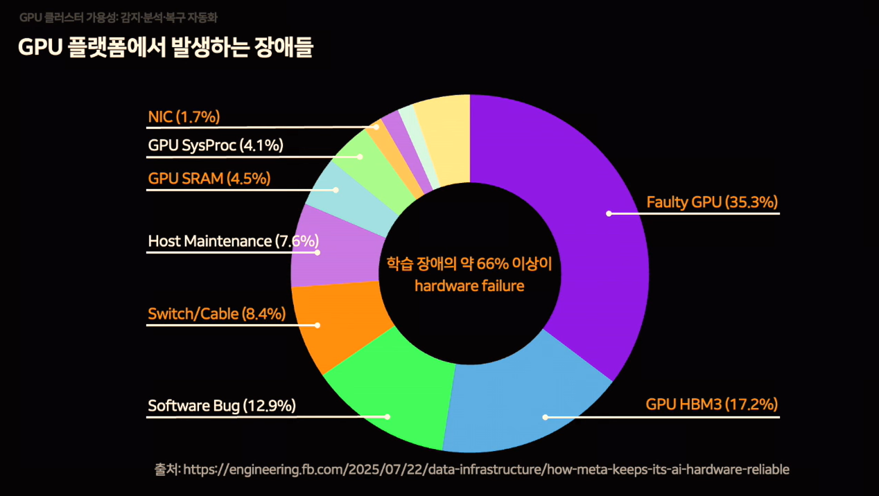 ## GPU 플랫폼에서 발생하는 장애들 - 학습 장애의 66% 이상이 H/W (34분)