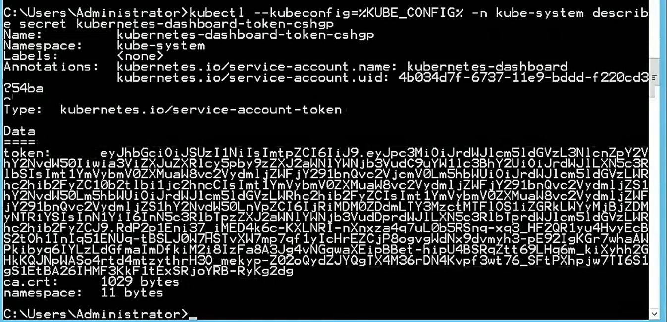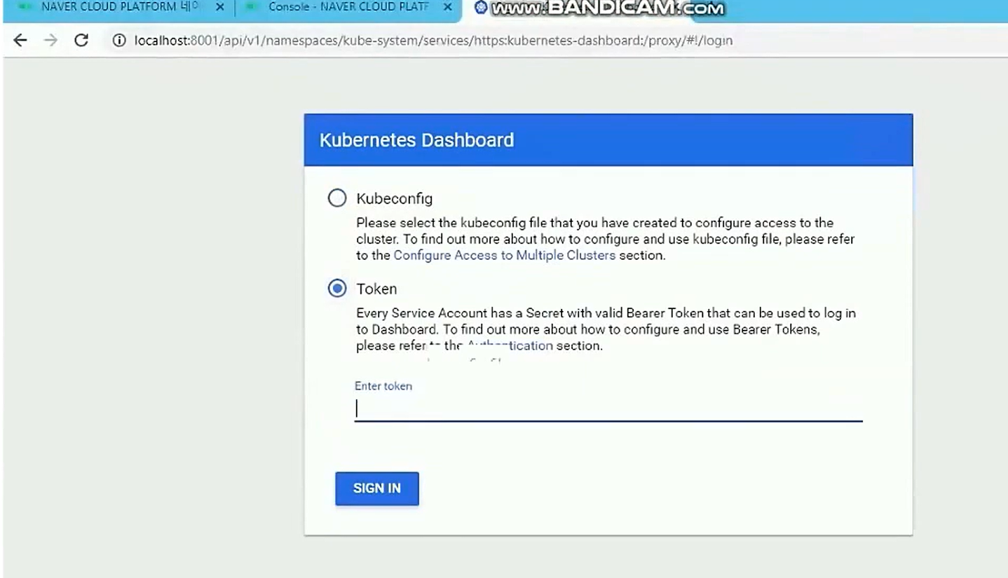 - 위에 토큰값으로 쿠버네티스 대시보드 접속