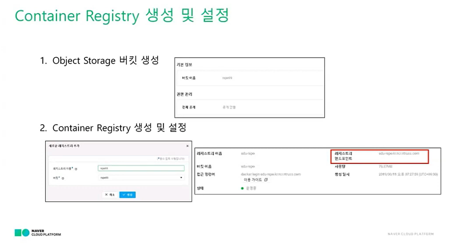 2) 컨테이너 레지스트리 (kube-reg) => S3 버킷 (kube) 과 연동