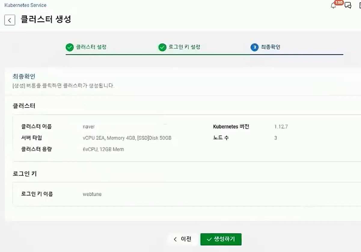5) 쿠버네티스 클러스터 생성 (클러스터 이름 : naver)