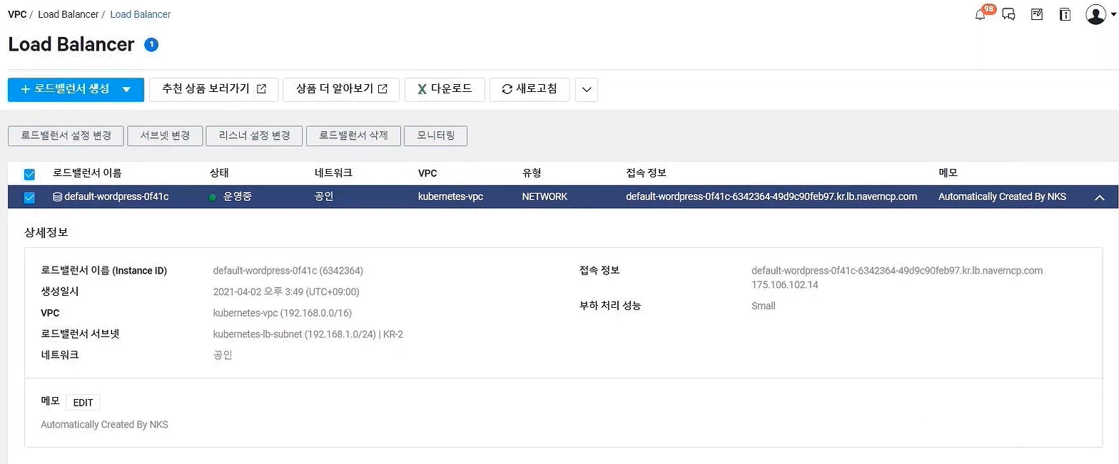 - Pod Service용 로드밸런서 확인