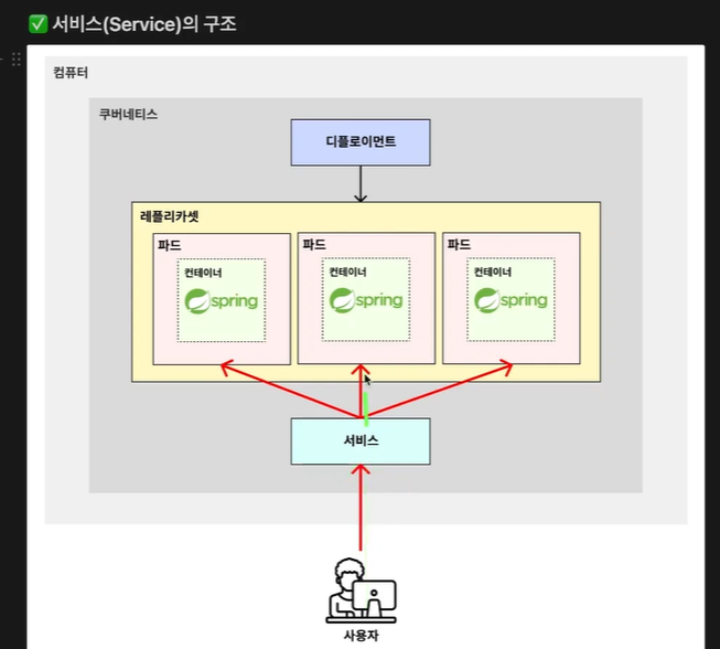 - 외부로부터 들어오는 트래픽을 받아, 파드에 균등하게 분배해주는 로드밸러서 역할을 하는 기능