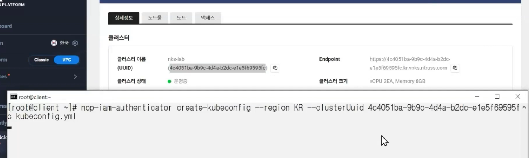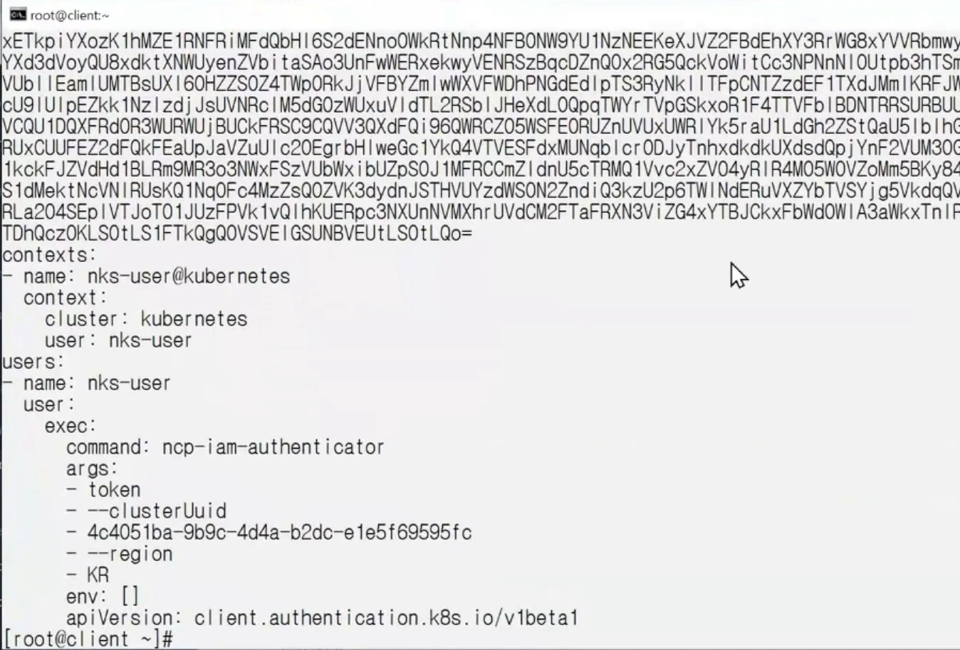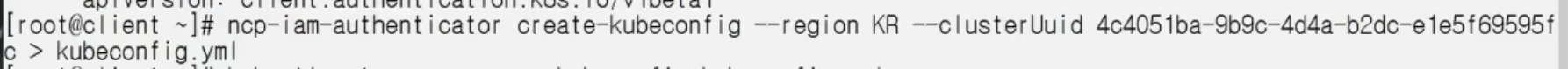 ncp-iam-authenticator create-kubeconfig --region KR --clusterUuid ~~